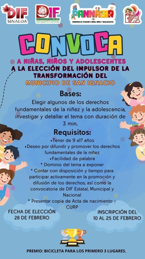 Convocatoria a niñas, niños y adolescentes a la elección del impulsor de la transformación del municipio de san ignacio
